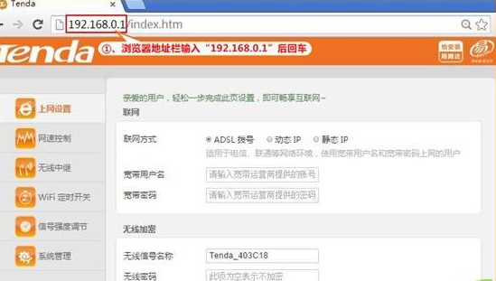 第一步:在浏览器中输入:192.168.0.1 按回车键,登录到路由器设置界面,如下图: