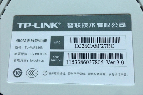 2、如下图所示,铭牌上并没有给出任何密码信息,表示这个路由器没有默认登录密码。